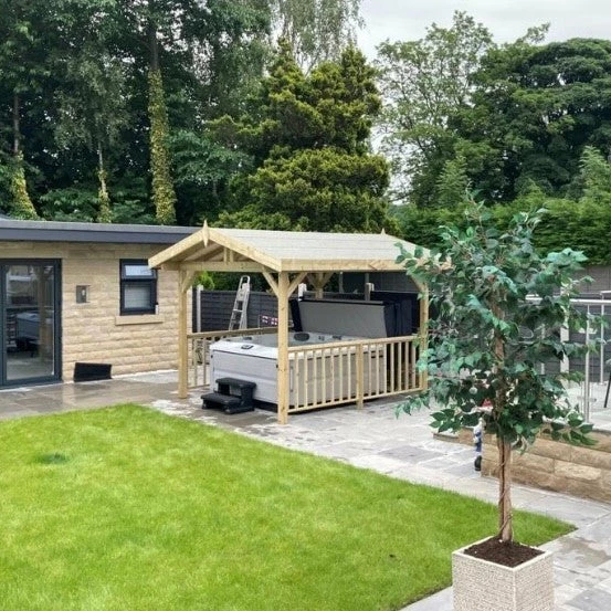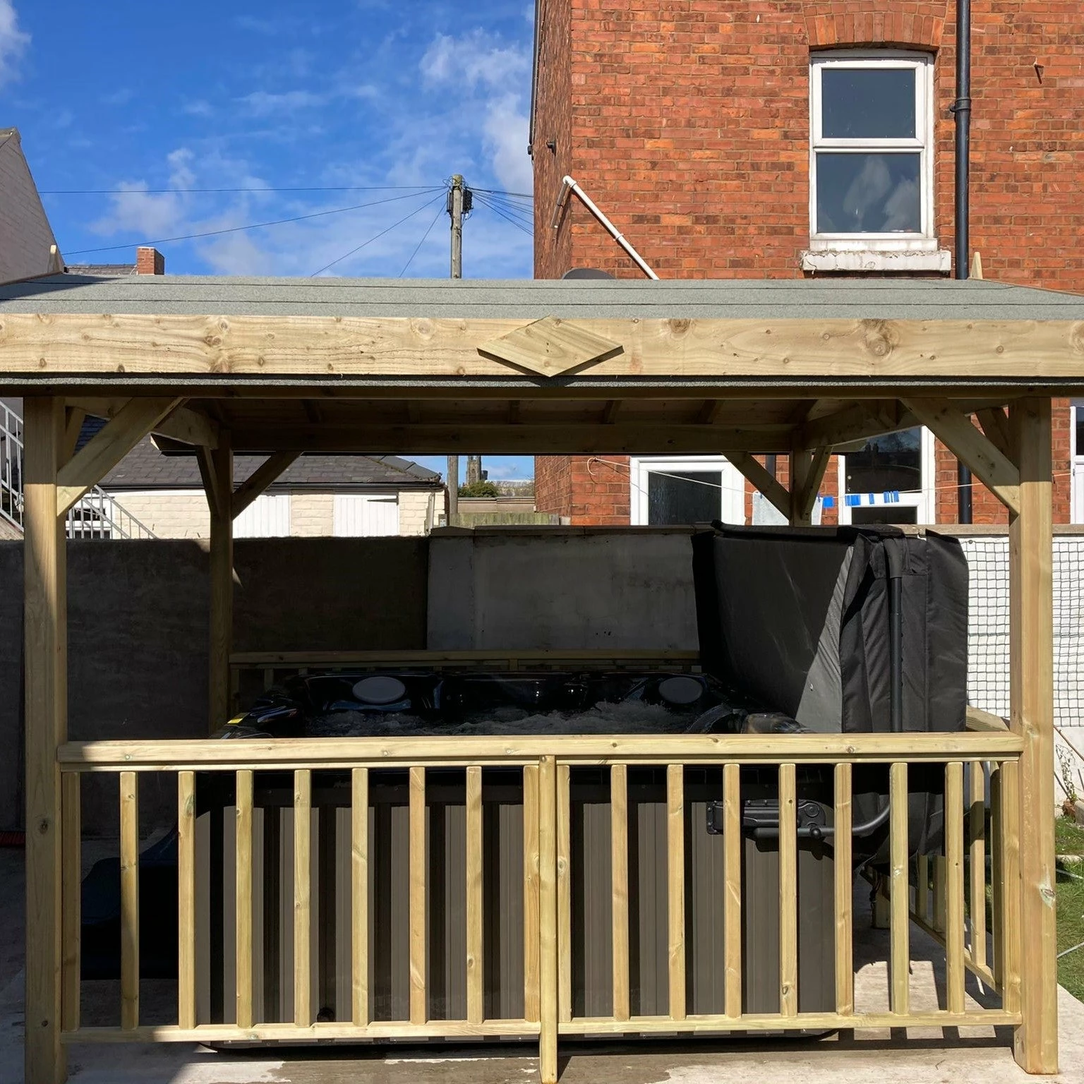 Wooden gazebos are an ideal choice for a hot tub shelter. They blend in seamlessly into your garden and allow for an open feel while protecting from the elements. Gazebos will enhance your relaxation experience in your own hot tub haven!