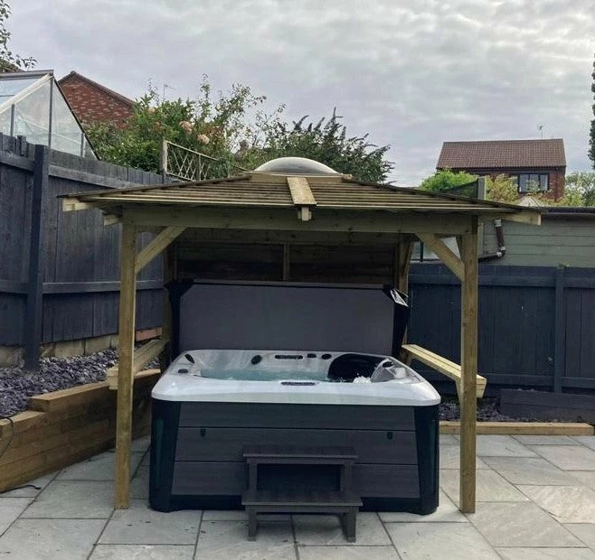 This wooden gazebo will blend seamlessly into your garden, while providing privacy from neighbours while you soak in your tub. Your hot tub will also get protection from wind and rain, prolonging its life and saving you money.