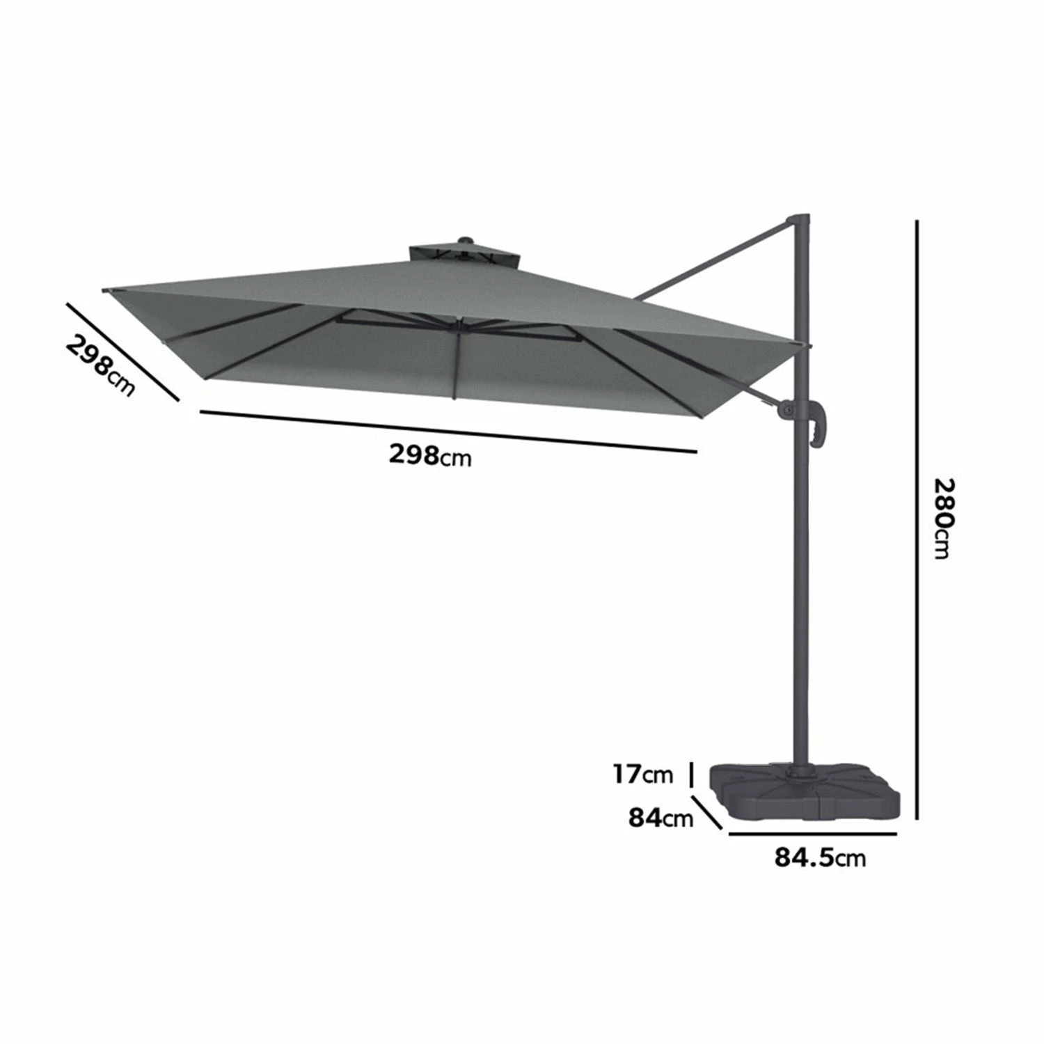 Make a stylish addition to your garden with this cantilever parasol. The canopy can be rotated 360⁰ with the foot peddle, plus it can be tilted and height adjusted thanks to the crank mechanism, so you can enjoy the outdoors whilst keeping yourself protected. Built with a sturdy frame structure, it’ll make a durable addition to your garden this summer. With water-resistant fabric, it’ll also withstand a light rain shower. The weighted base that is included can be filled with water, giving your parasol even more stability.