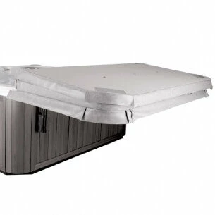 - Extend aluminum bars. Fold spa cover and slide onto shelf.