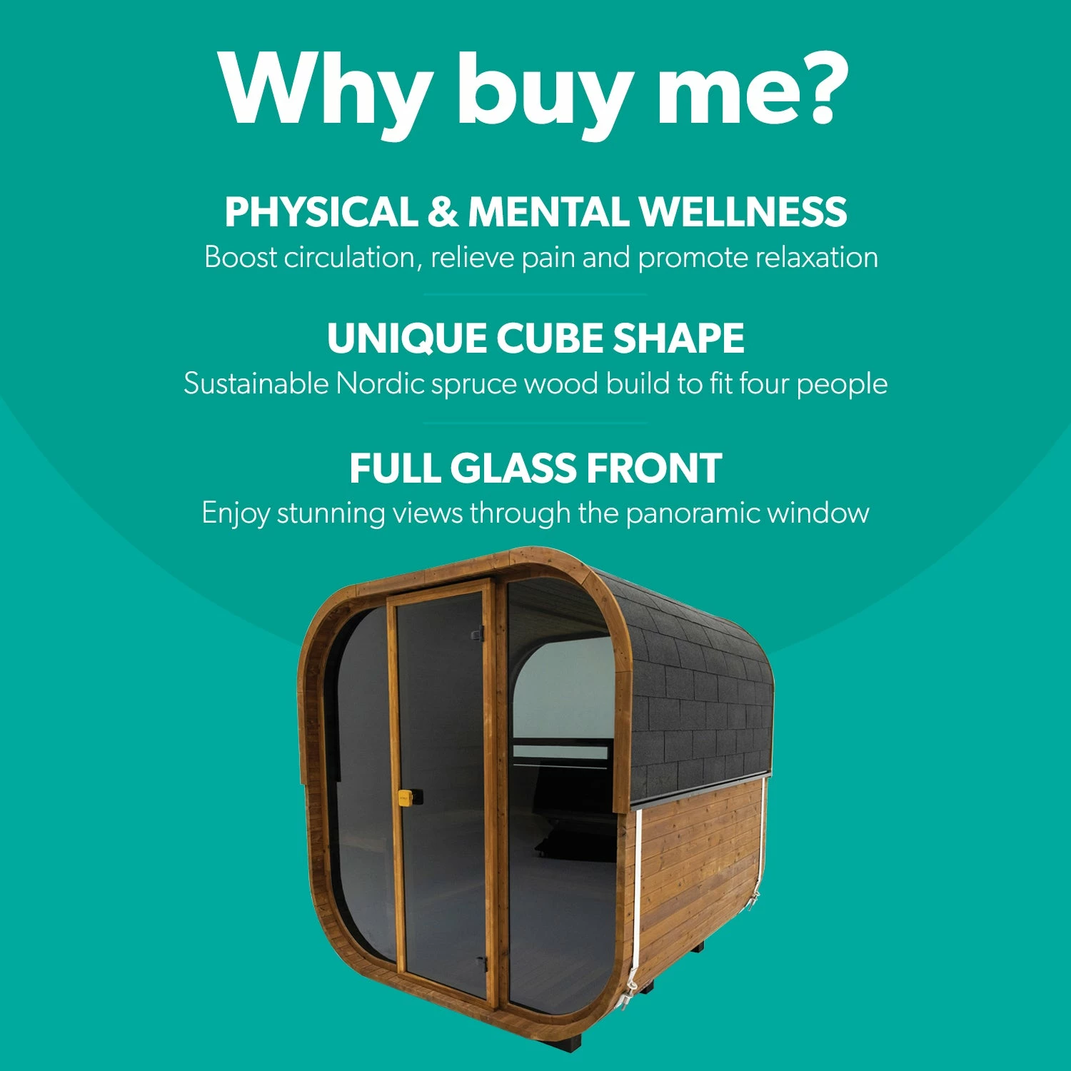 - 4 person cube sauna for your own spa sanctuary in your garden