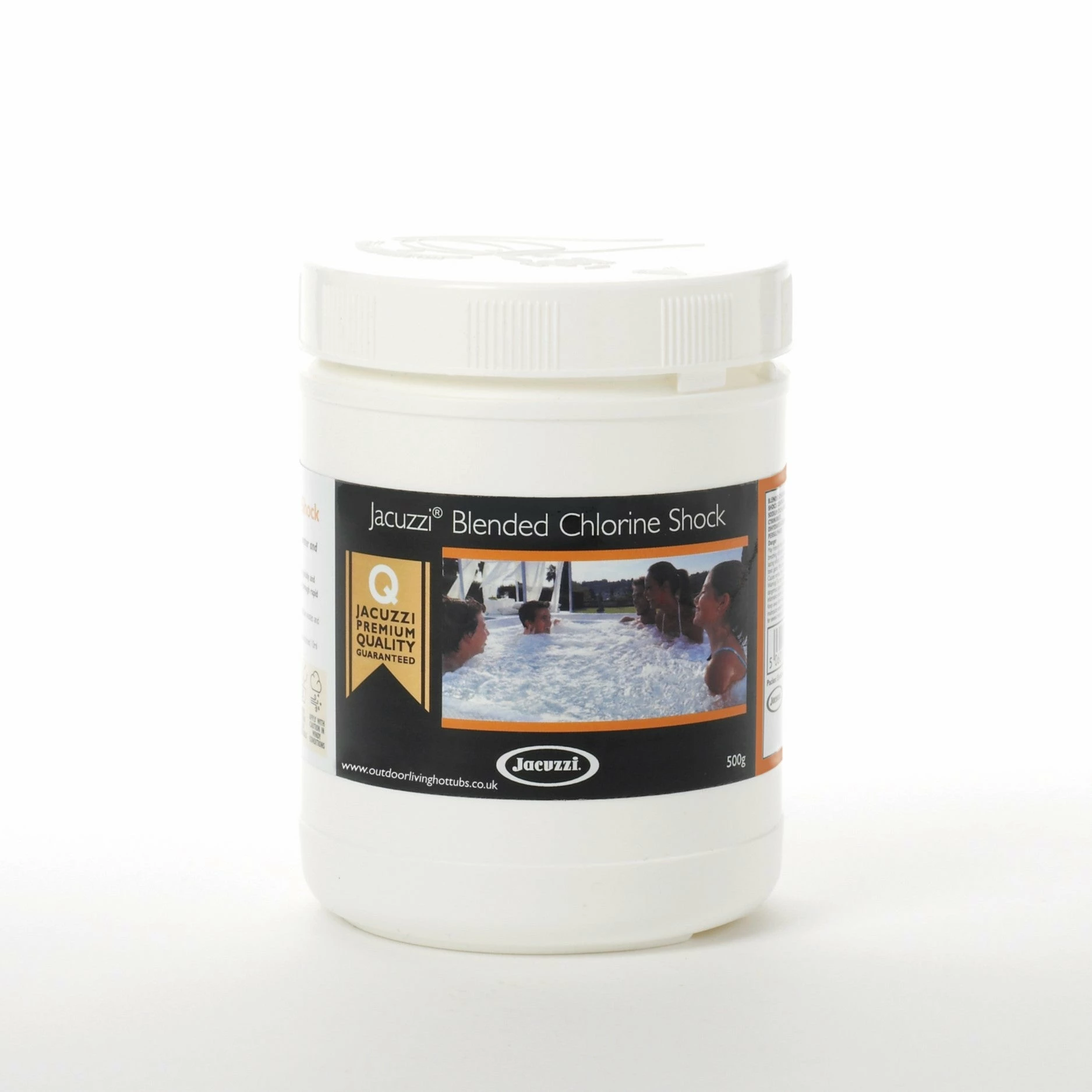 Jacuzzi Blended Chlorine Shock Treatment is a fast-acting formula that effectively destroys non-filterable waste and improves water clarity in hot tubs.