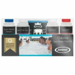 Our Jacuzzi® Hot Tub Chlorine Starter Kit has you need to get your hot tub up and running in no time! This chemical kit includes 500g of pH minus, 500g of pH plus, 500ml of antifoam, water test strips, 500g of chlorine concentrate and a chemicals hot tub guide.