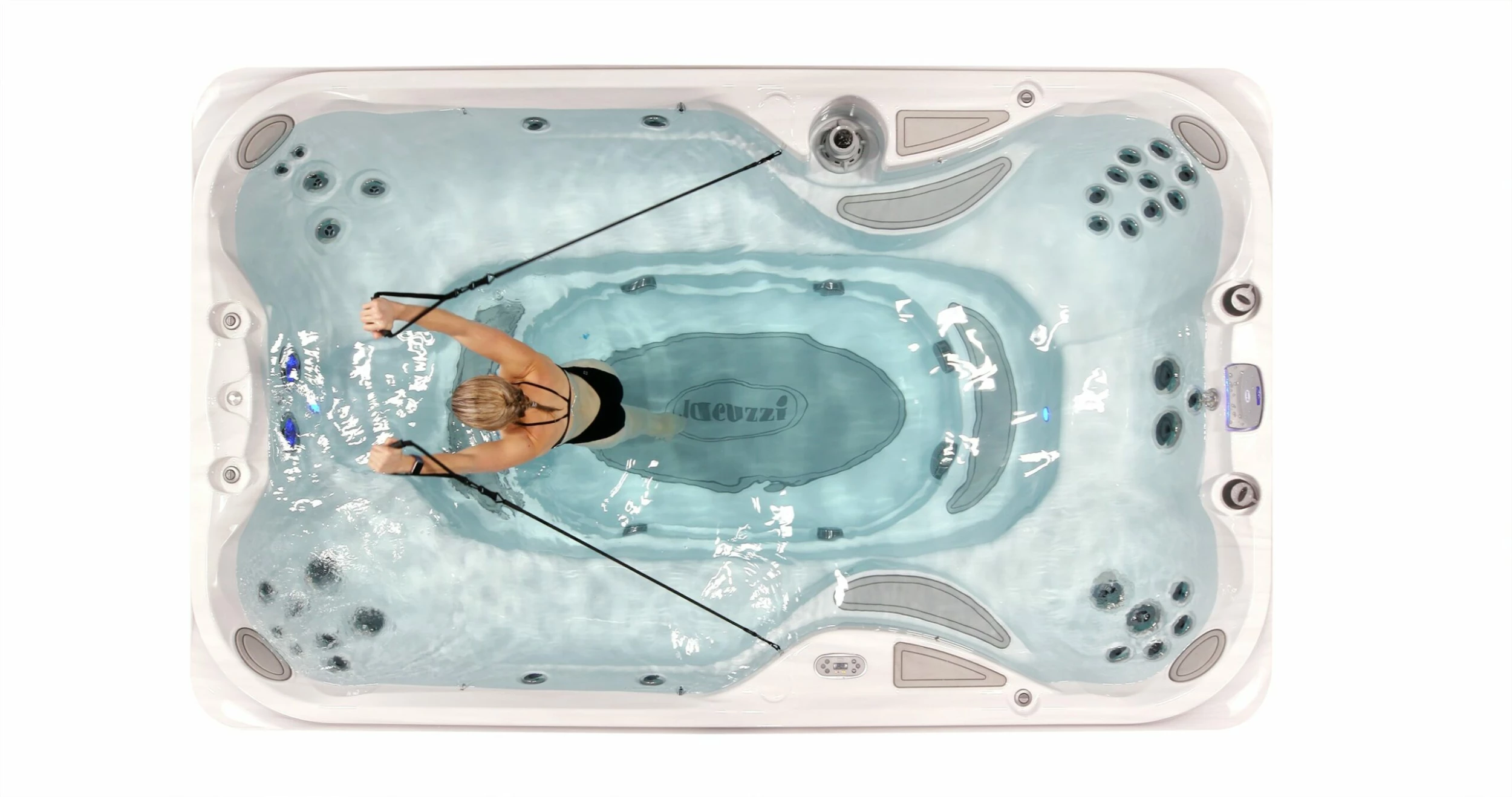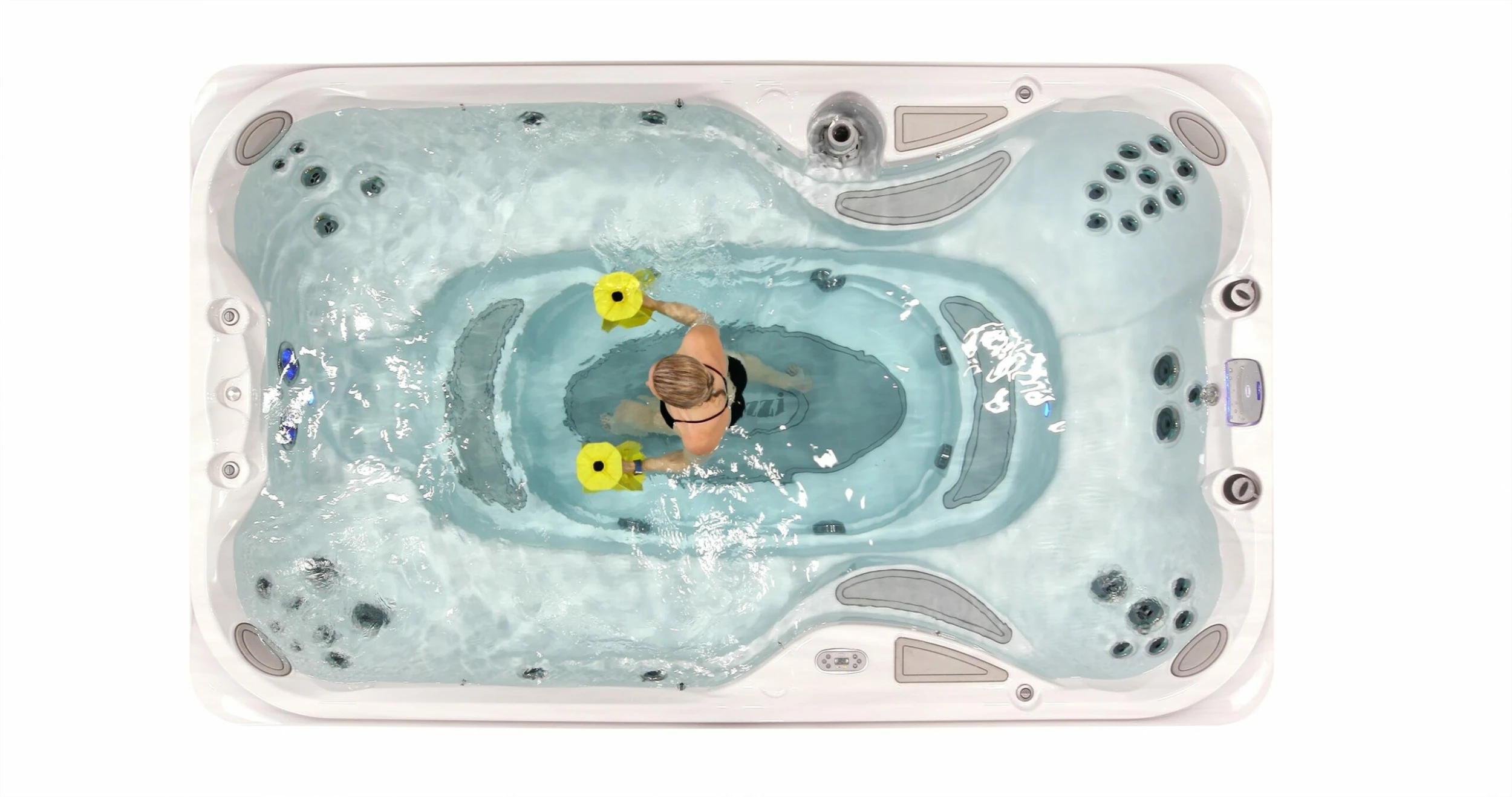 Two PowerPlay™ CX swim jets deliver the perfect current for an entry-level swim. Two 3HP 2-speed pumps and a 3HP single-speed pump produce a consistent water velocity for quality exercise, fun and hydrotherapy. Return suctions at the opposite end eliminate turbulence for a smoother swim. The fitness kit creates varying-intensity workouts, with PowerTone™ bells, resistant fins and more. The large internal surface with a non-slip base ensures you don’t slip when working out, entering, or exiting the swim spa.