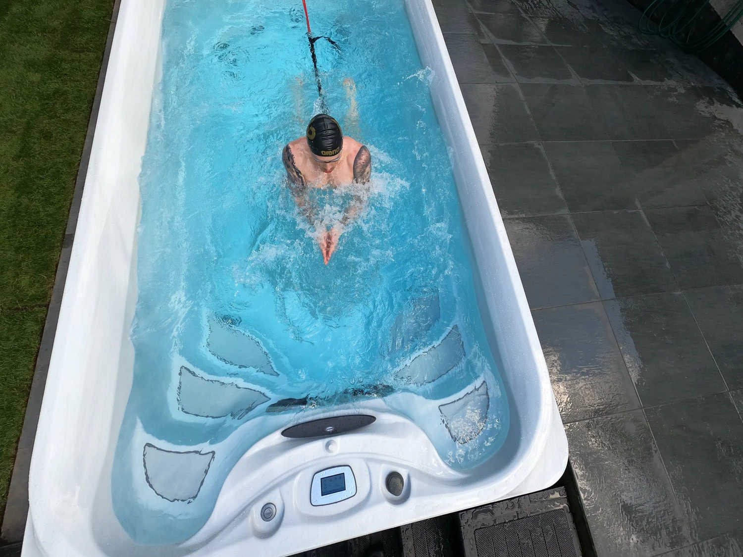 A swim spa combines all the hydrotherapy, wellness and relaxation benefits of a hot tub, with the added luxury of a swimming pool – all at a fraction of the cost of a pool.