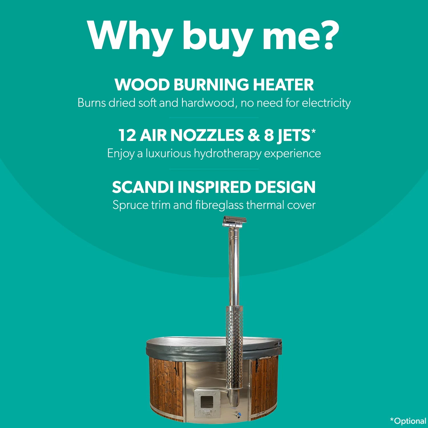 Get the most out of your soak wherever you sit. It includes 12 air nozzles and optional Jacuzzi jets placed in a specific formation to give you a soothing massage experience. Your body is left feeling revitalised and relaxed. It’s perfect for light entertainment, too, as there’s a bottle and glass holder, so you or your party needn’t vacate, re-enter, and get comfortable again. This wood-fired hot tub really is a happy place.