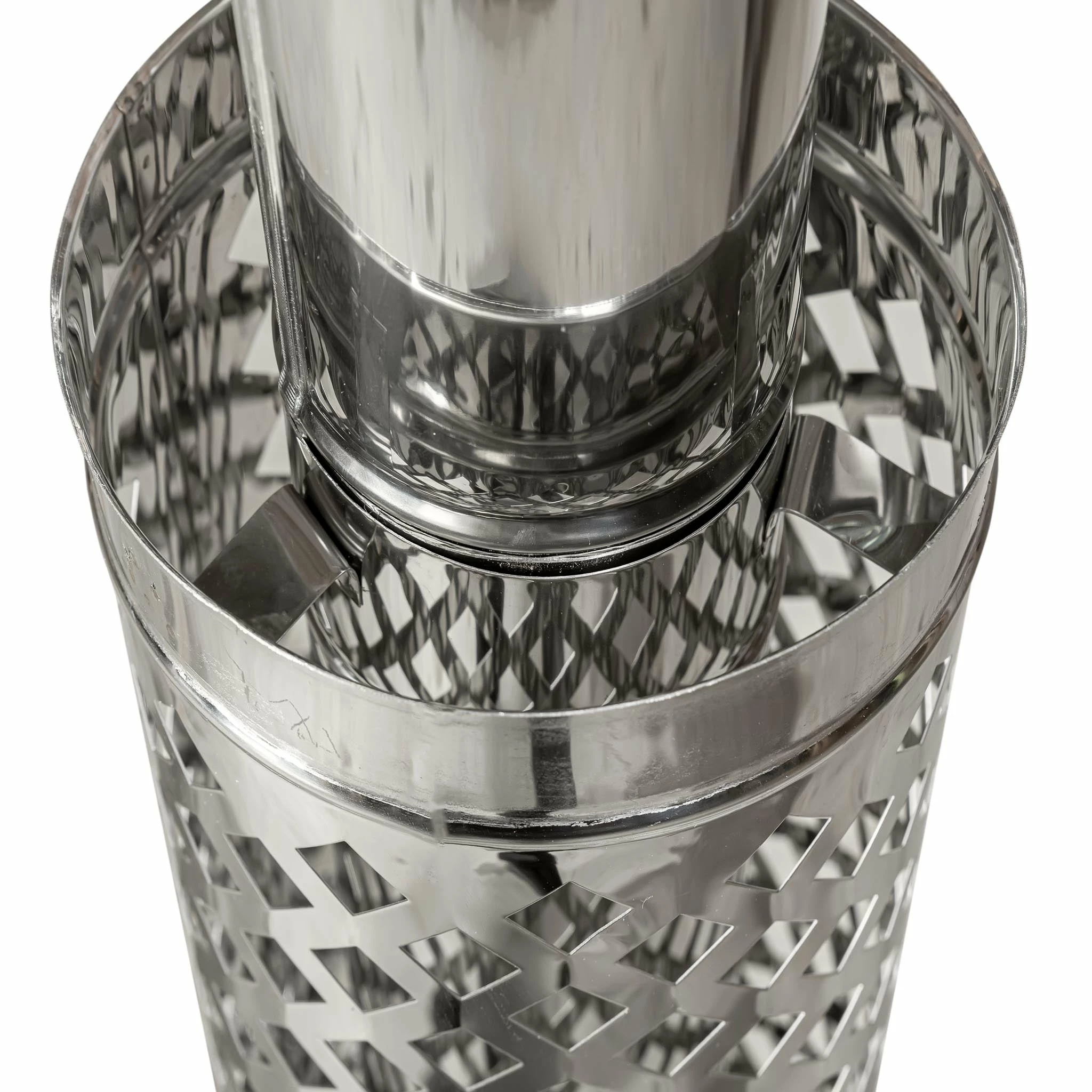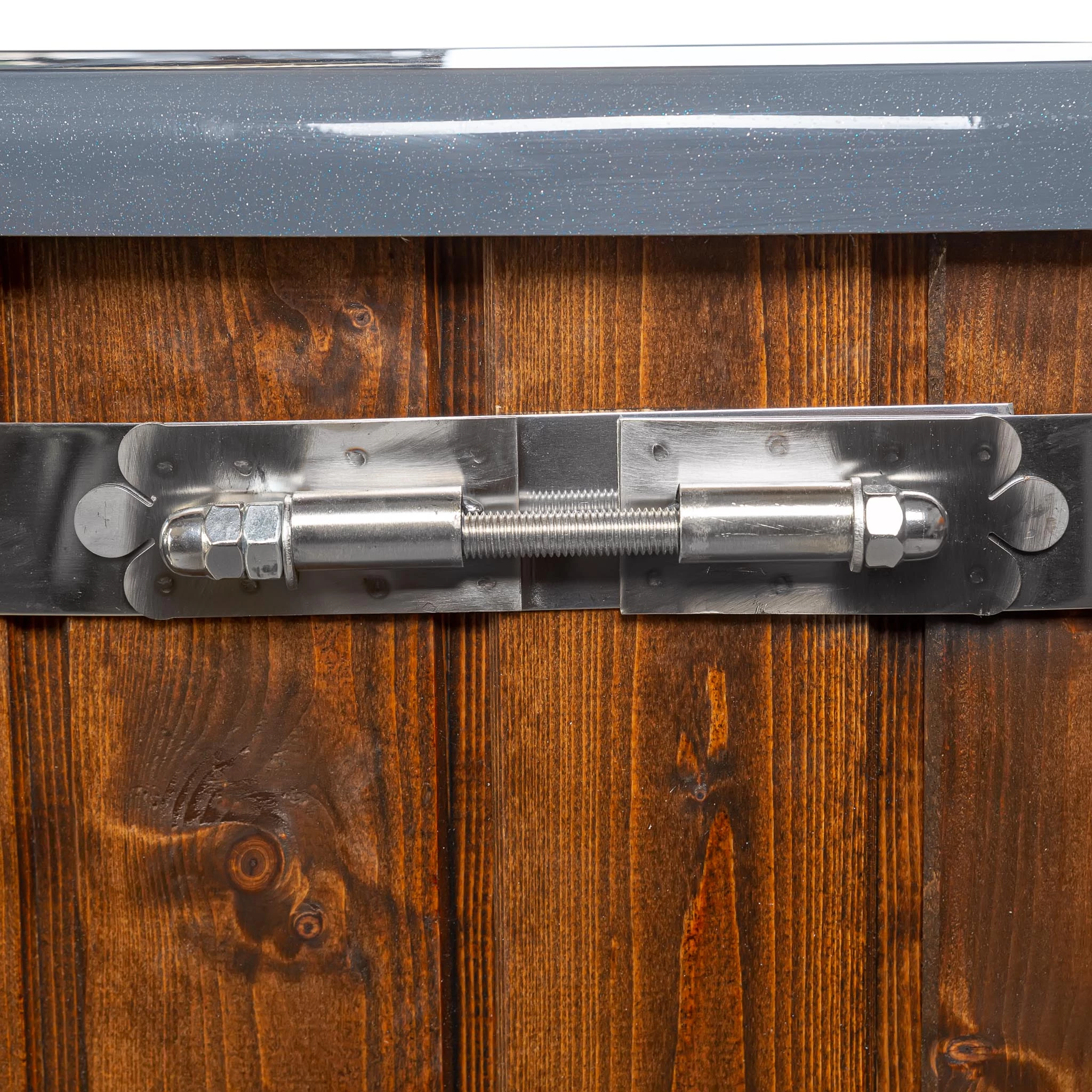 This elegant wood fire hot tub is a premium build, from its sleek white inner shell to the spruce wood trim and matching bespoke two-tiered steps. The wood has been pre-treated, too, to prevent rotting and to increase its lifespan. Two LED lights illuminate your bathing space so you can take your soak into the evening or simply guide yourself in. Plus, you can be sure of your safety with the chimney heat guard.