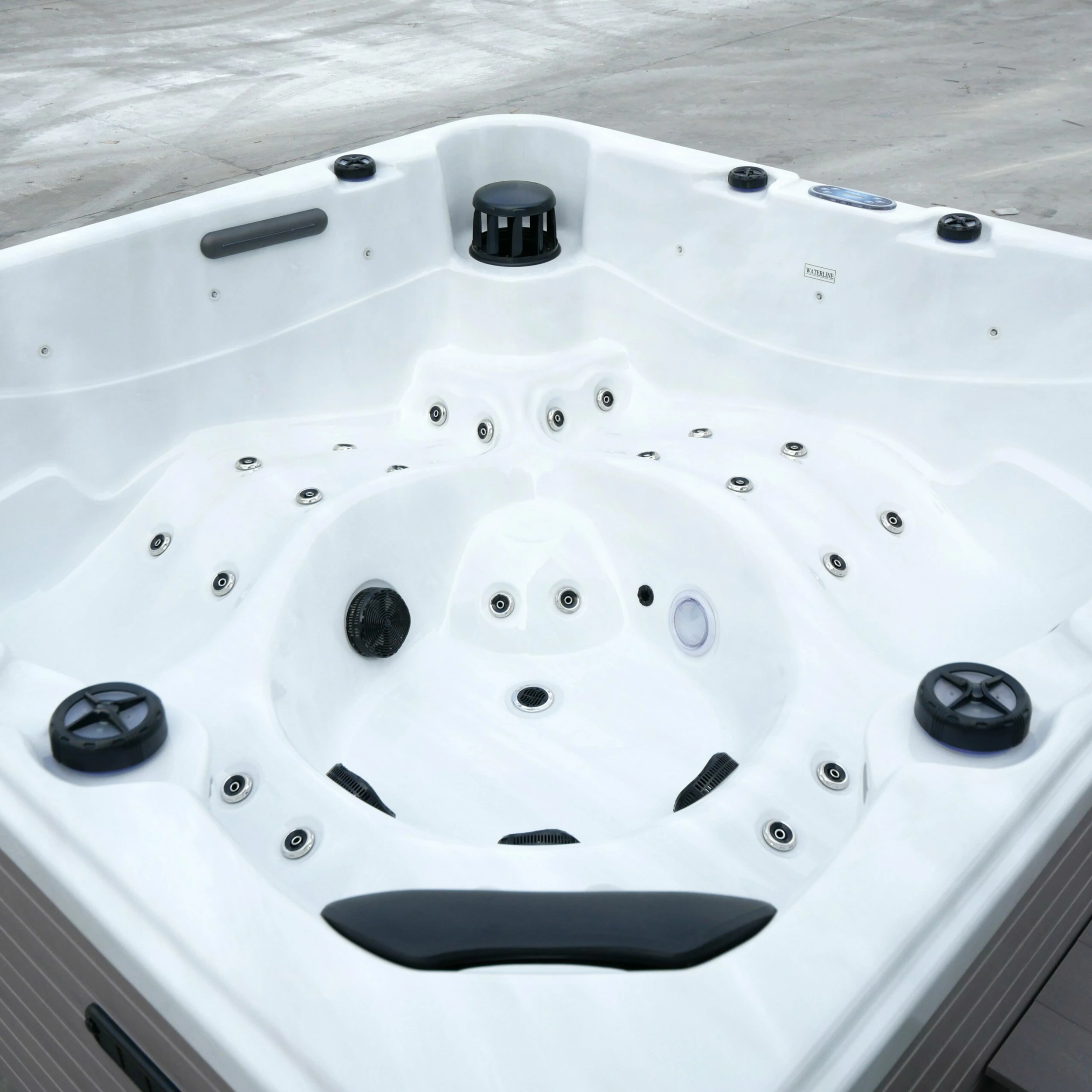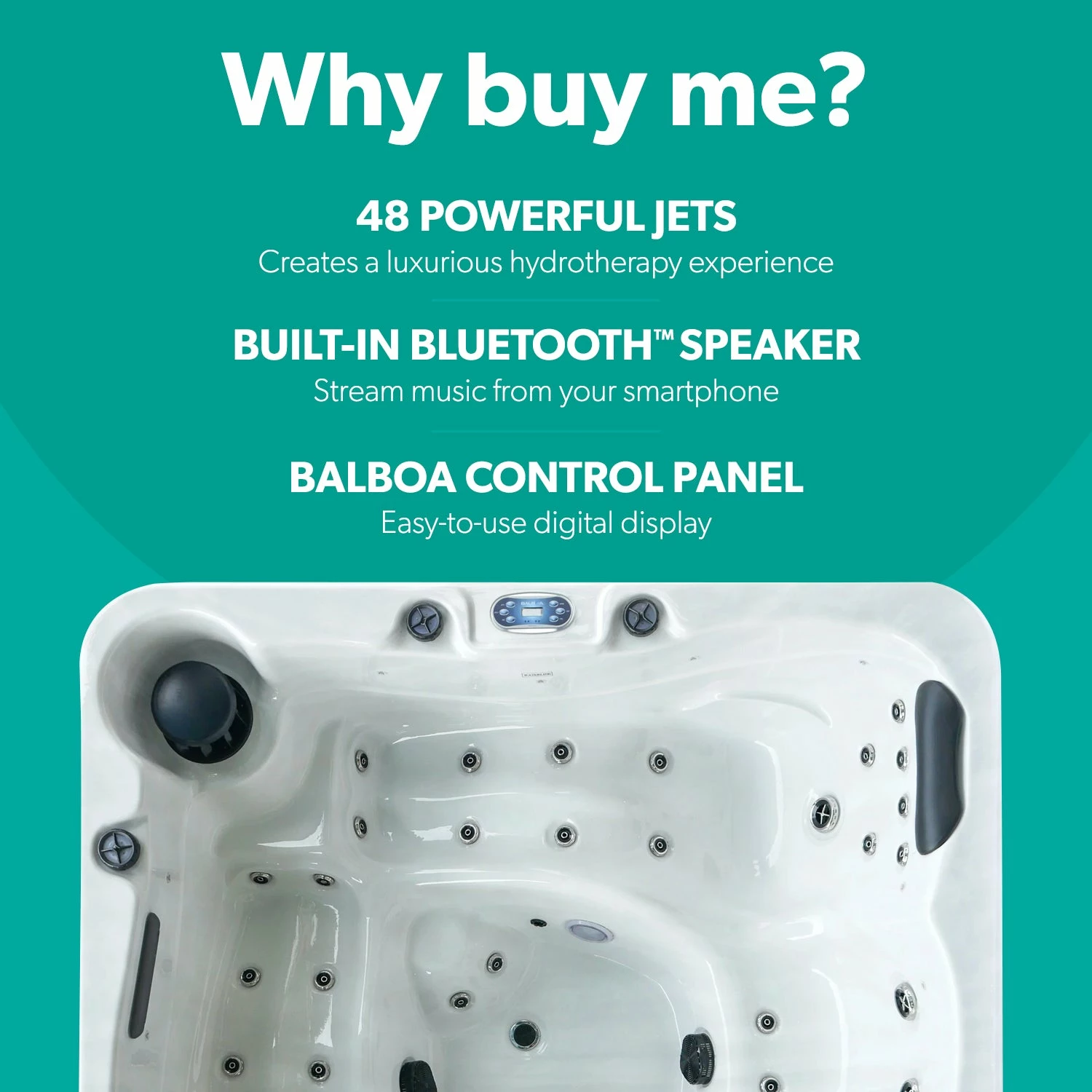 Not only is this hot tub aesthetically pleasing, its features and technology ensures that there’s something for everybody, from the multi-coloured water level and underwater lighting, a built-in Bluetooth music system to play your favourite tunes and a choice of seating. It’s perfect for the couples who can have a lounger each, family fun time and big enough to host when having guests over. Plus, the ozone purification system keeps your water clean and clear, so you can enjoy it for longer.