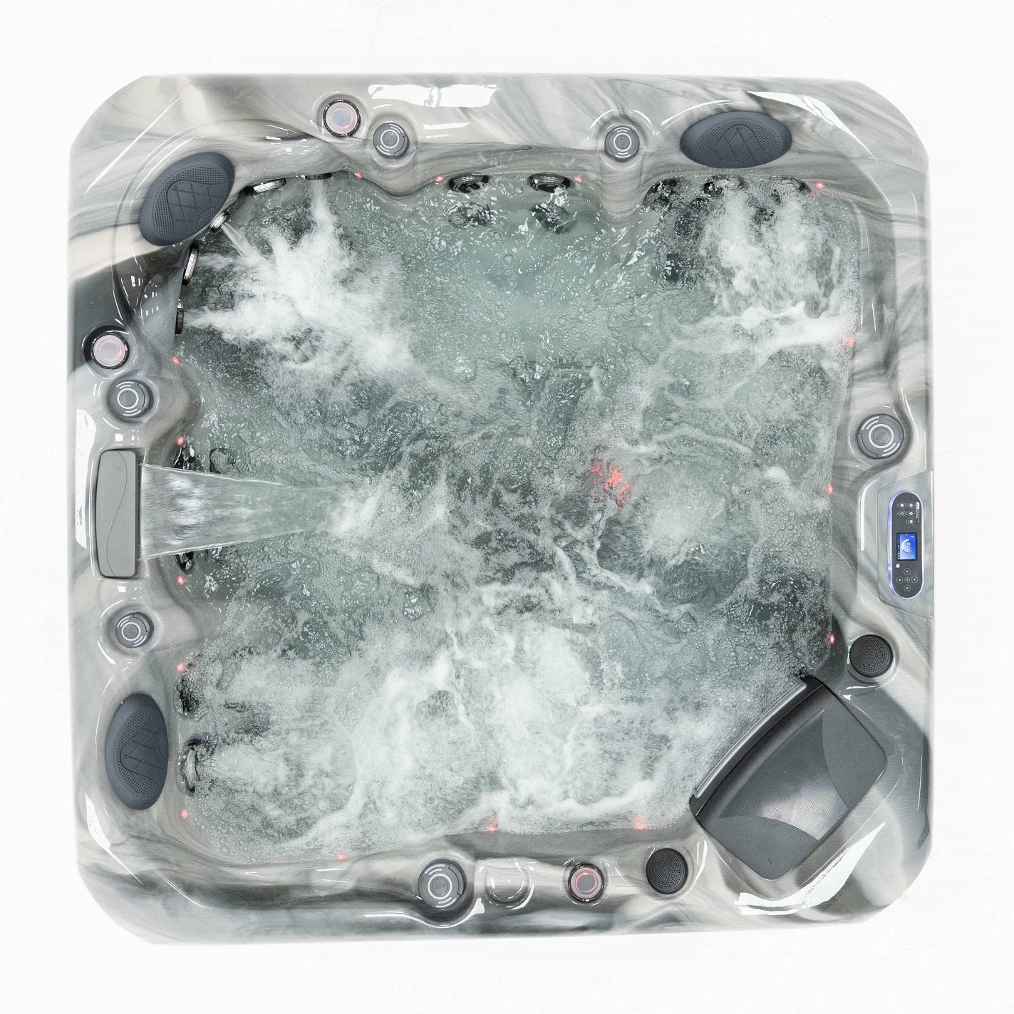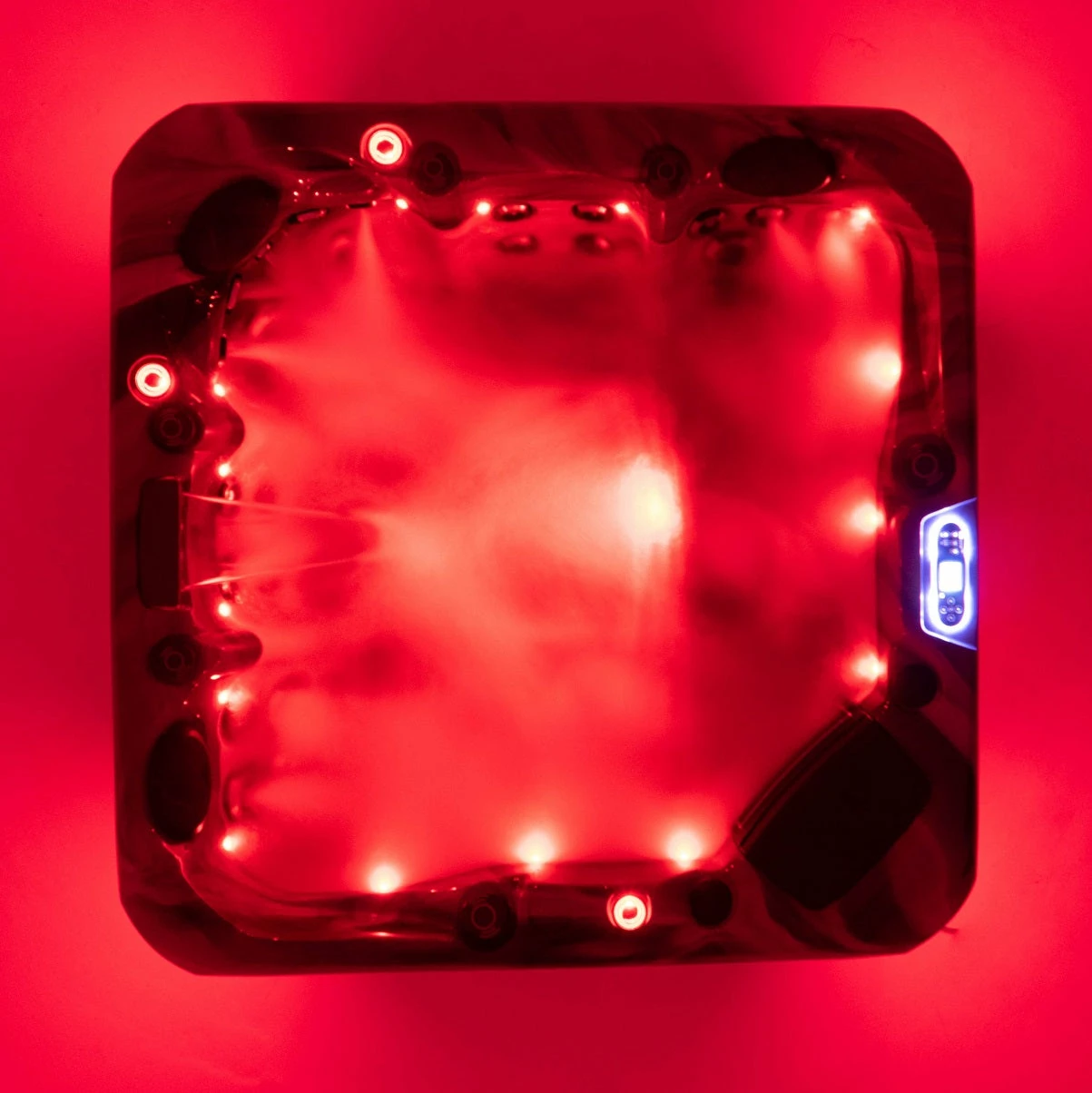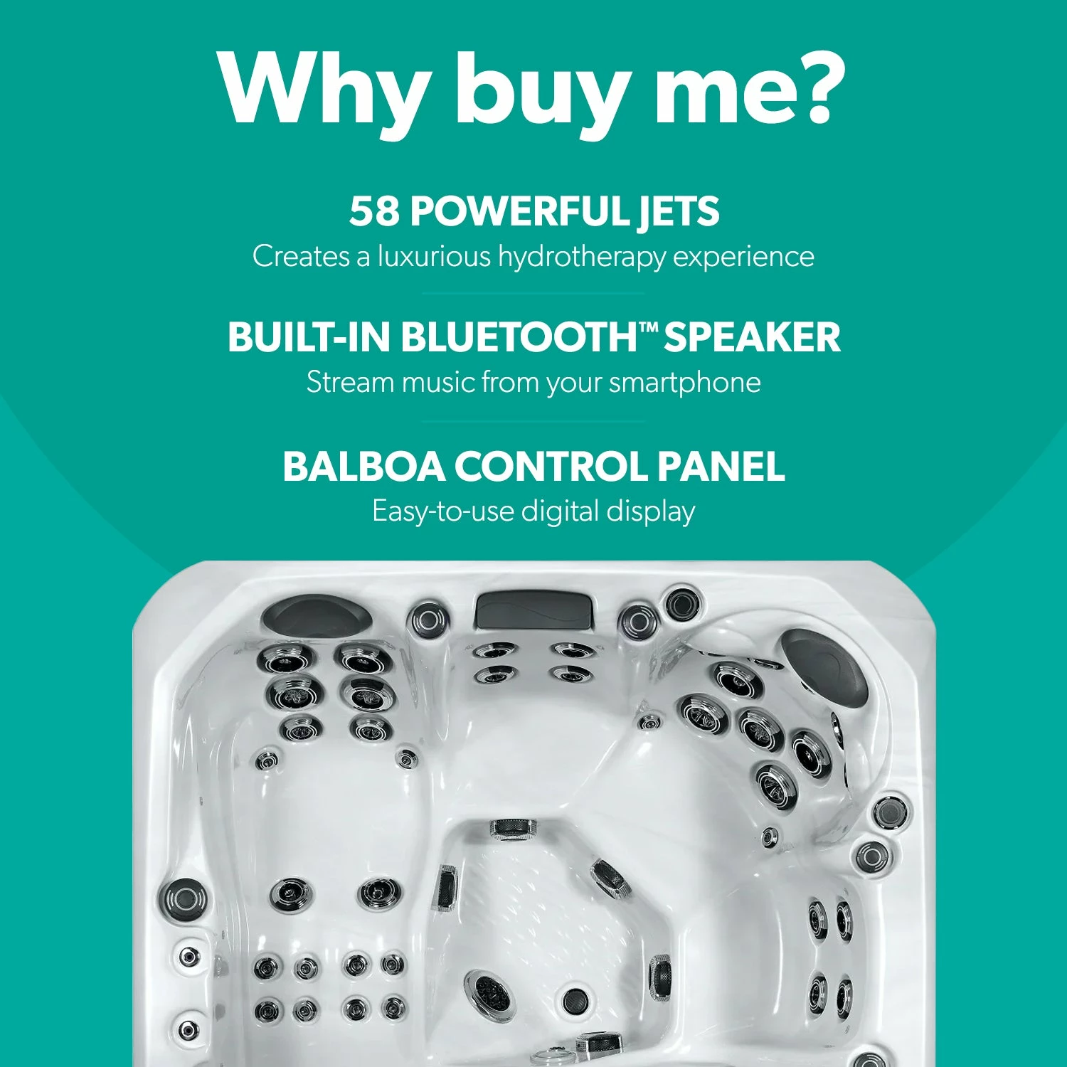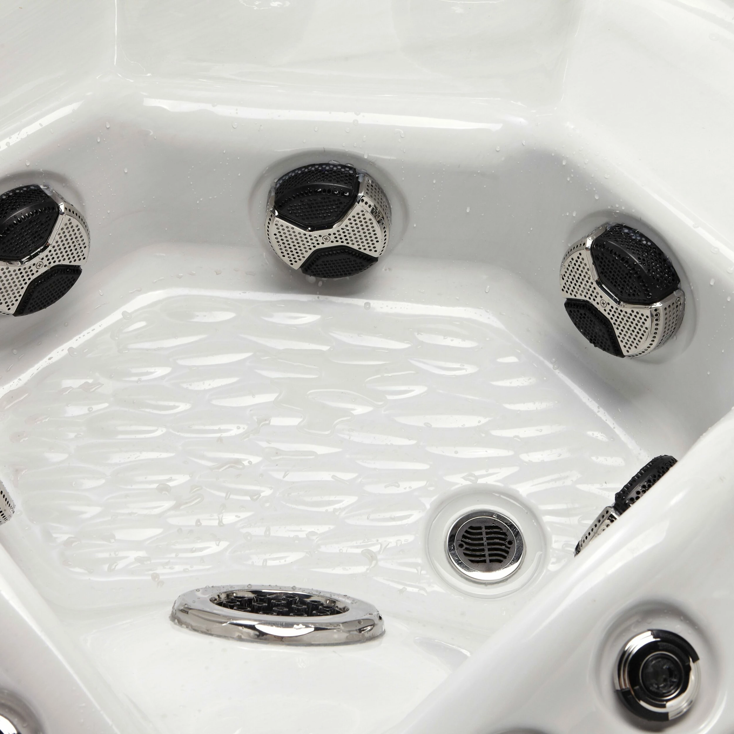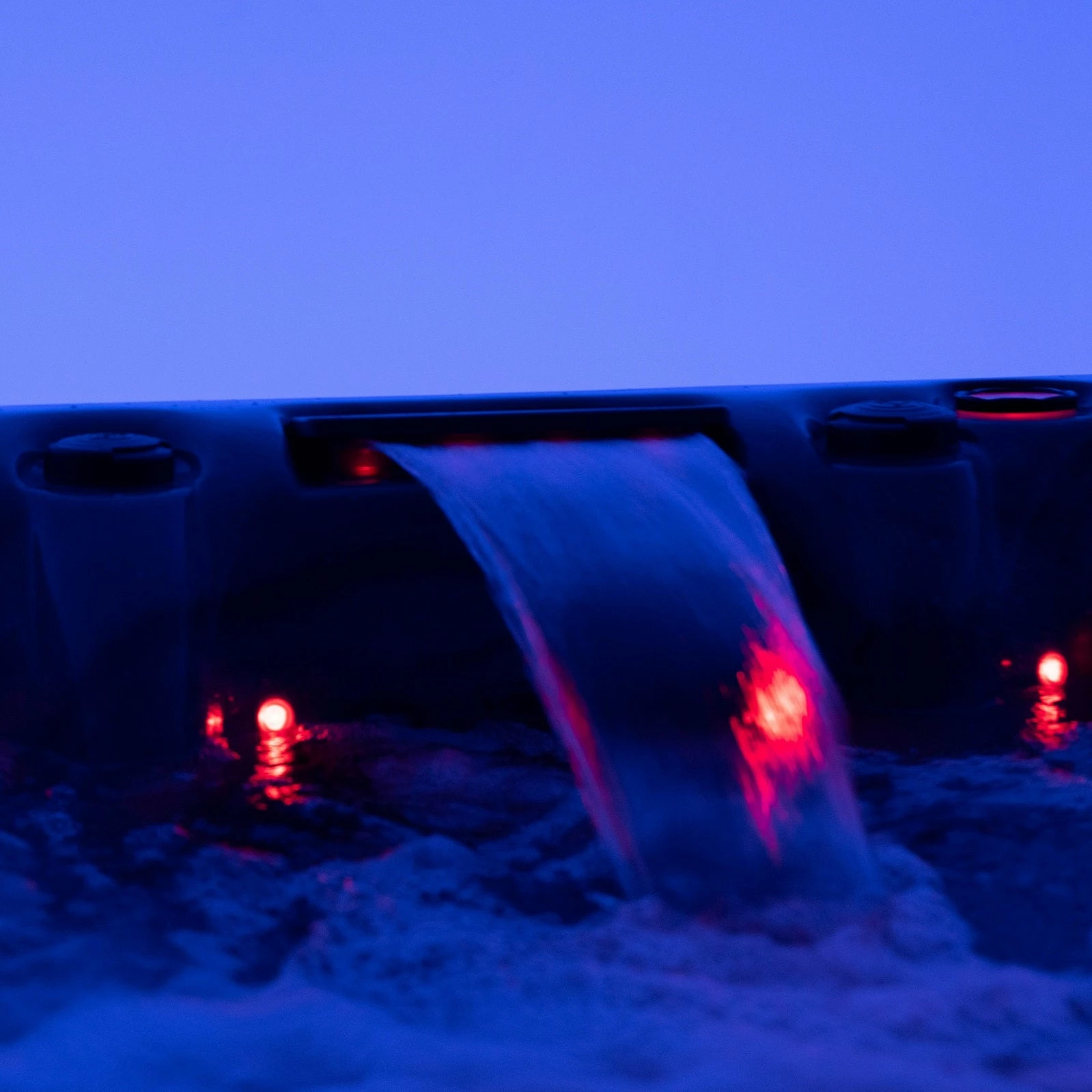 With 58 powerful jets, this tub offers a relaxing and invigorating hydrotherapy experience which differs from seat to seat and to suit your needs. The jet layout includes rotating and directional jets to help relieve back tension and aching muscles. There are diverters around your hot tub, so you can adjust the jet selection and massaging pressure using the controls. The LED backlit water fountain adds to your well-being journey.