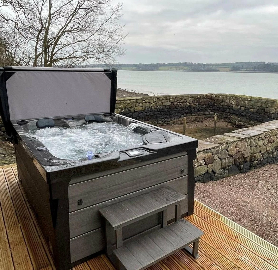 - Intimate 3-seater hot tub with 2 integrated loungers